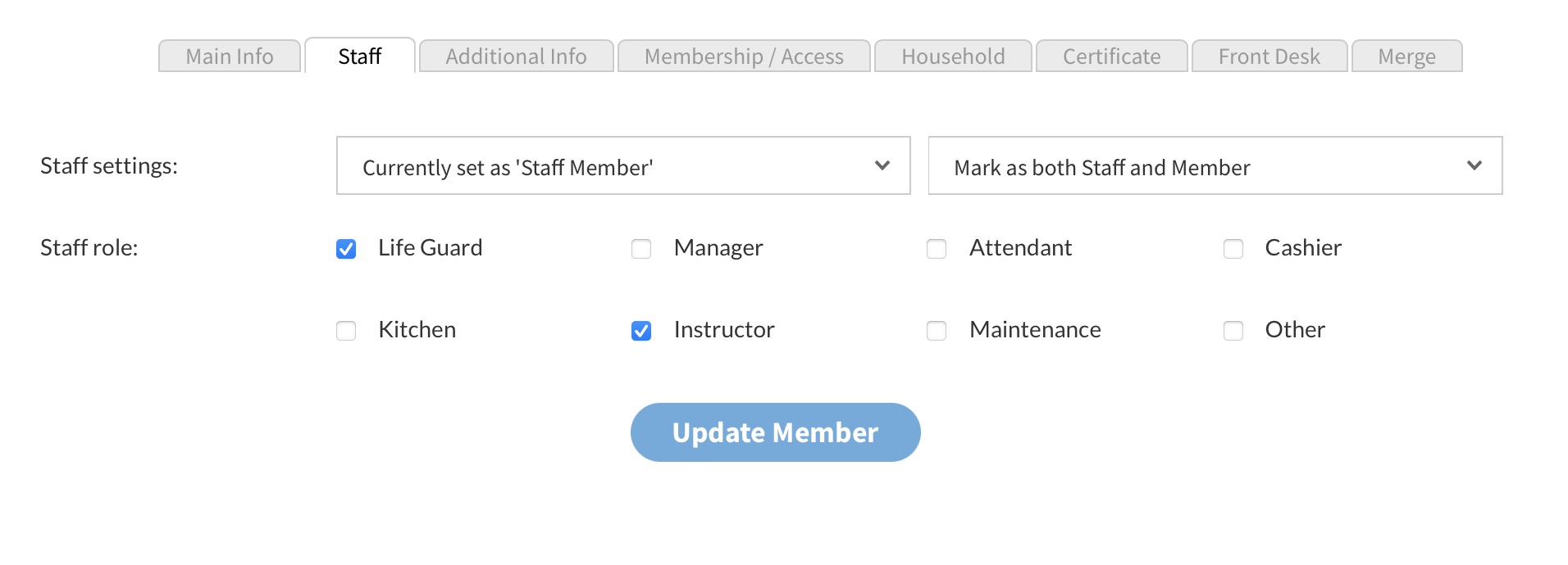 Next just click on the Staff Roles (like Lifeguard, Instructor, etc) that apply to this person…