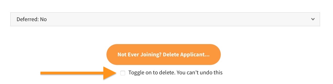 Leave this set to NO, or choose a year to defer until. If you need to delete the applicant from the wait list completely this is where you do it, just ensure you have toggled on the checkbox.