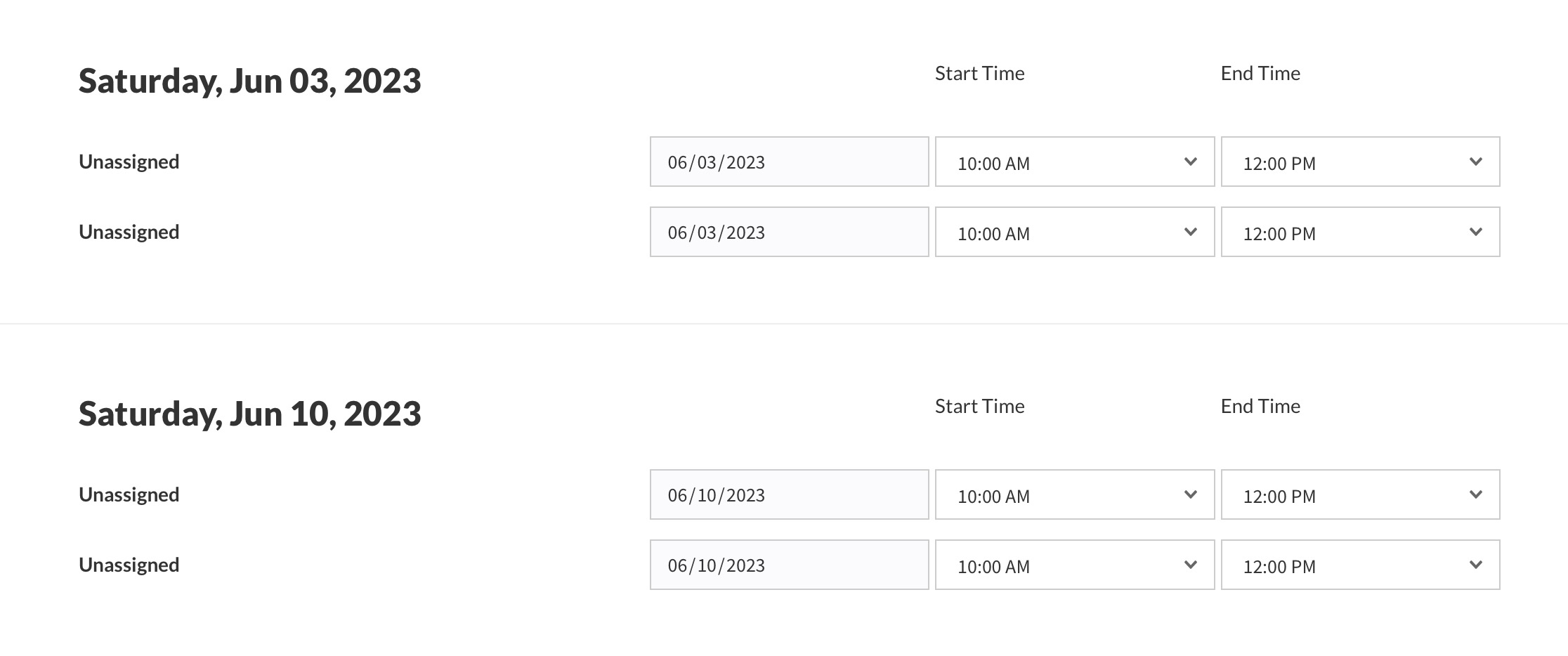 Reminder – Before assigning shifts consider who your calendar is intended for and whether or not everyone in your potential assignee pool is qualified to work every job. For example, you might not want to mix lifeguards and concession stand workers on the same calendar if the settings allow staff to switch jobs or self-sign up for unassigned jobs. The risk would be that a concession stand worker signs up for a lifeguard job that they are not qualified for.