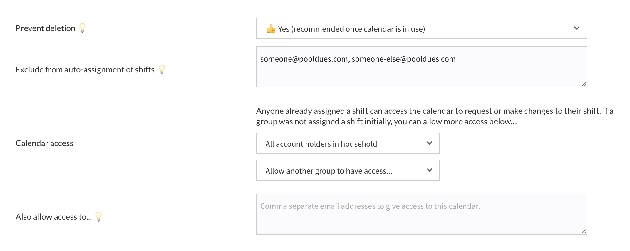 Prevent deletion – Set this value to “yes” prevent the calendar from being accidentally deleted with the Delete Shifts tools.