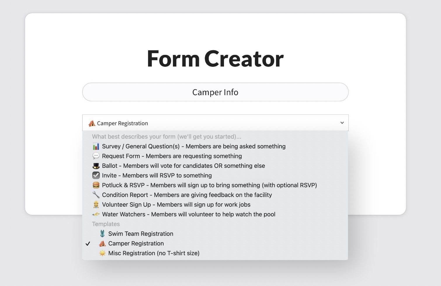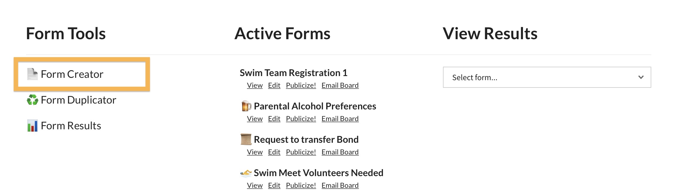 Select the Form Creator option. From this page, title your form then choose from one of the best options that describe your form.