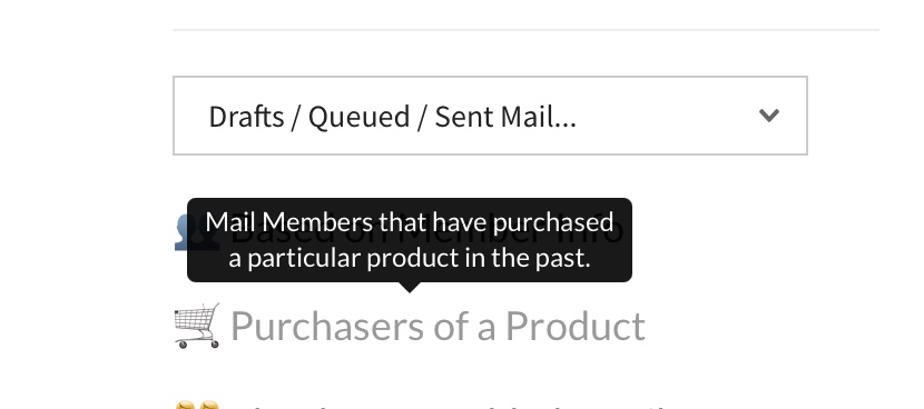 Option 2 – You could also send an email to all members that have an interest tag set. Products can set interest tags in a member’s account. From the Communications Module select Based On Member Info, then find the Interest tags in the top pulldown.