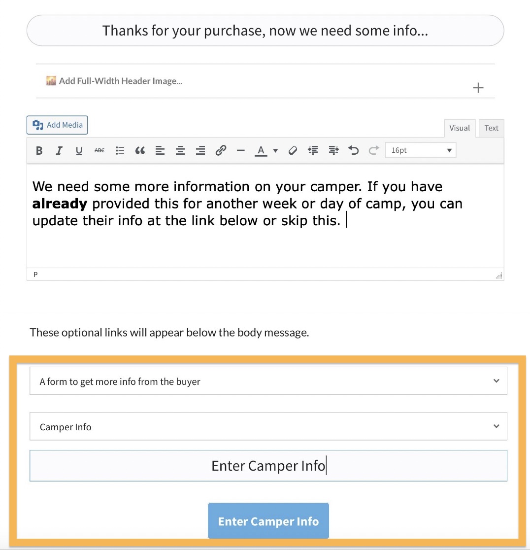 Once your form is ready, we can add a link to it in the followup email sent to buyers. This email is sent immediately after their order.