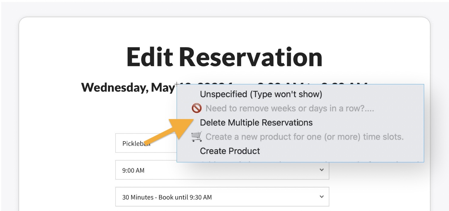 To delete multiple reservations, for example a clinic every Tuesday for 10 weeks, find the first the reservation you would like to delete…