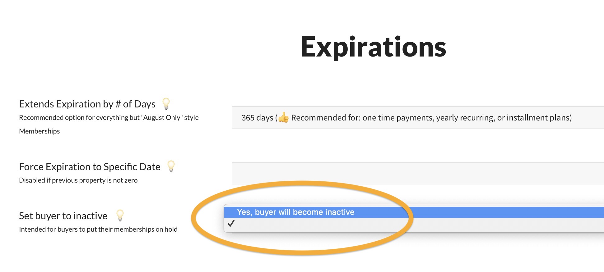 Accounts can automatically be set to Inactive by purchasing a specific Membership product intended to make them inactive. If that sounds counter-intuitive, read why you might sell this type product below. First, here are the settings for a Membership product that sets an account to inactive…