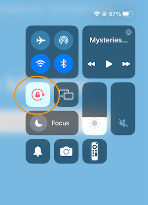 Last step: The app works best in “portrait” mode. Ensure you’re holding the iPad so it’s taller than it is wide, then swipe/pull down from the upper right corner (where the battery life is) and lock the orientation. It will look like what’s circled below:
