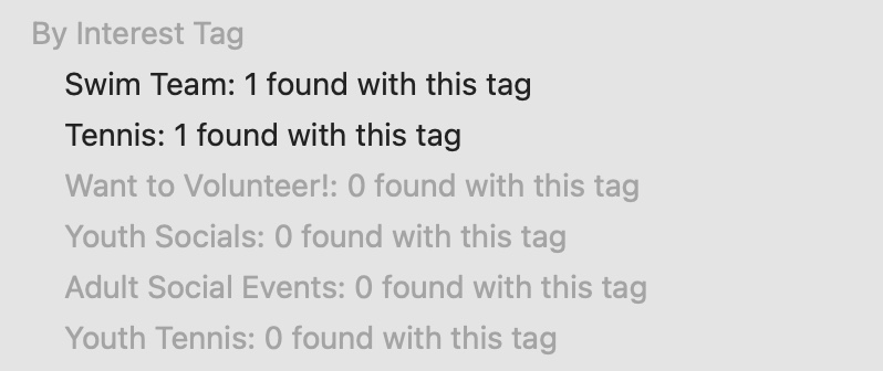 Interest tags are a great way to create an email distribution list and target certain audiences for communications. Tags can be used to contact groups of members by interests, activities, or as an internal option to be used by Board Members only. But first you have to set them up.