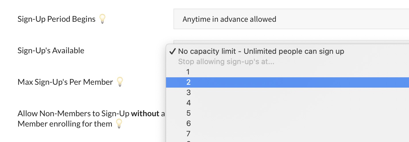 Sign-Up’s can be capacity limited
