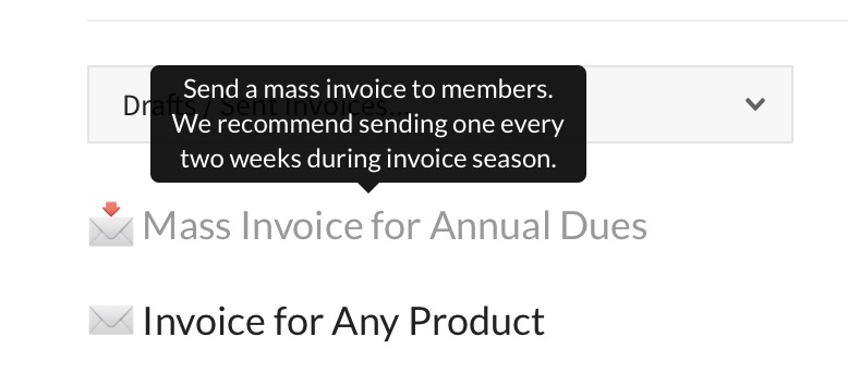 💡 Get to know our system – Our system does not automatically send invoices. Our clients tend to all have their own style of invoicing and timing (we read some fun ones). But we recommend once your club begins invoicing, you do so every couple of weeks. No club is lucky enough to have a membership that all pay after their first invoice. The beauty of our system is that invoicing is very quick and rather thoughtless (remember, once someone pays online they are excluded from invoicing).