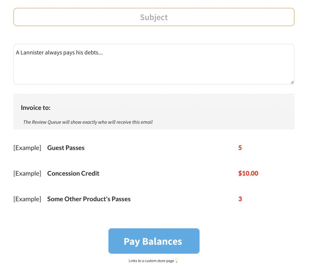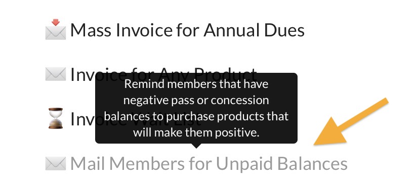 💡Getting to know our system. Members are always paying for a product when they purchase through your website. The email they receive if they have an unpaid guest or concession balance is not requesting they pay an exact amount, but will instead ask them to pay for a product that will then make their account no longer have a negative balance.