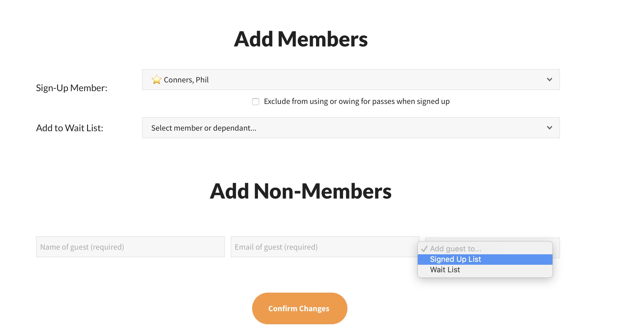 - Add or remove members, dependents, or non-members to the Sign-Up.