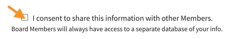 If they choose to exercise the option to create a Member Profile, they will be presented with a page with their basic information pre-populated based on what is already in the database to make it easier, but the member will need to check the box at the bottom of the shared profile page to ACTUALLY share it in the directory. Members can leave any field blank that they don’t want shared, and can come back here to change what they’ve shared anytime.