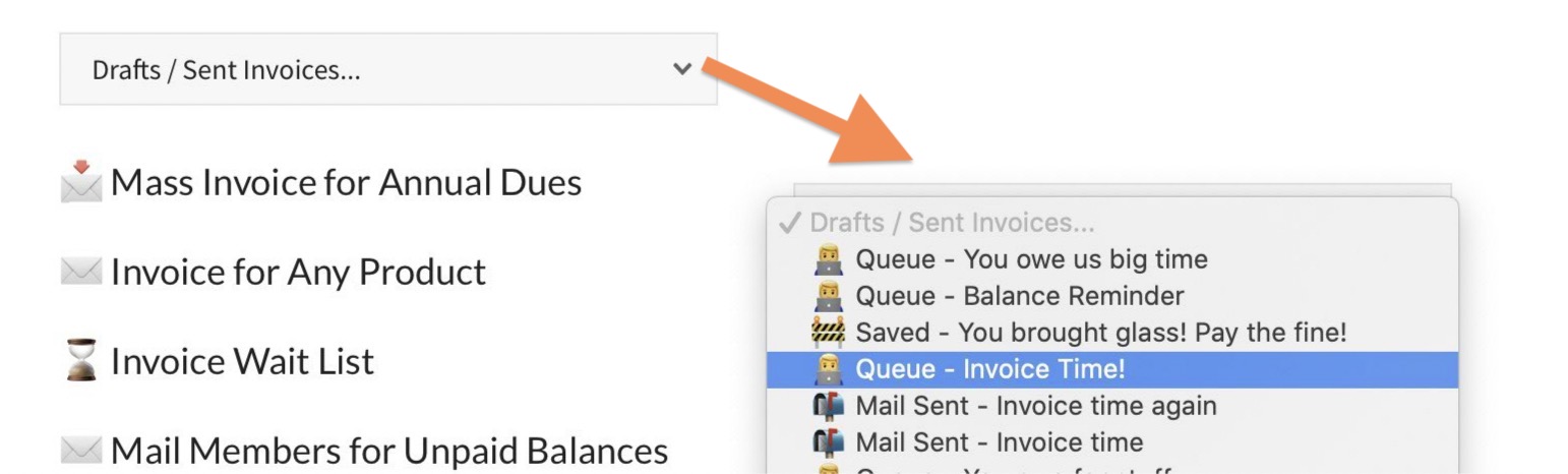 We mentioned resending invoices, but the Mass Invoice for Annual Dues option is always a dynamic list of who will receive an invoice. Obviously a member that has paid their annual dues will not get an invoice again for that year. So while you could pull up a previously created mass invoice and send it again, all this is doing is using the same sending options, subject line, body, and footer text as the original. The receiving list will have likely changed.