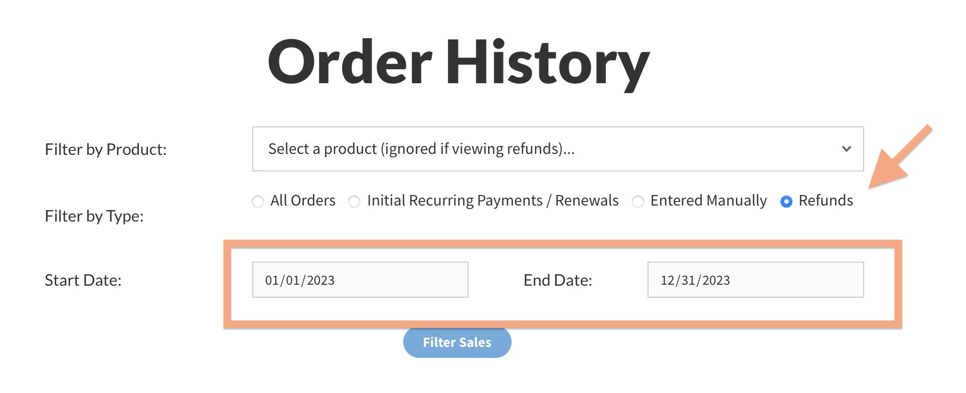 It is easy to find all refunds by going to the Financial Dashboard then Product Order History . From there, simply click the “Refunds” radio button and you can optionally sort by a date range. Any type of refund (full or partial) will be shown after tapping Filter Sales.