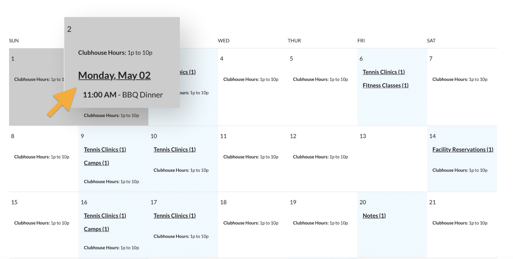 Suppose your members have a Book Club that meets every Thursday in the clubhouse.You do not need 10 pages with the exact same text just to tell people there is a regular Book Club meeting 10 weeks in a row.