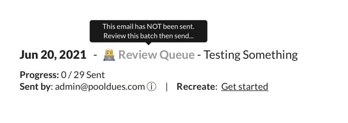 Once your batch has been sent, the Review Queue will note the time each email was sent, so it serves a double purpose to also become a historical log of sent mail.