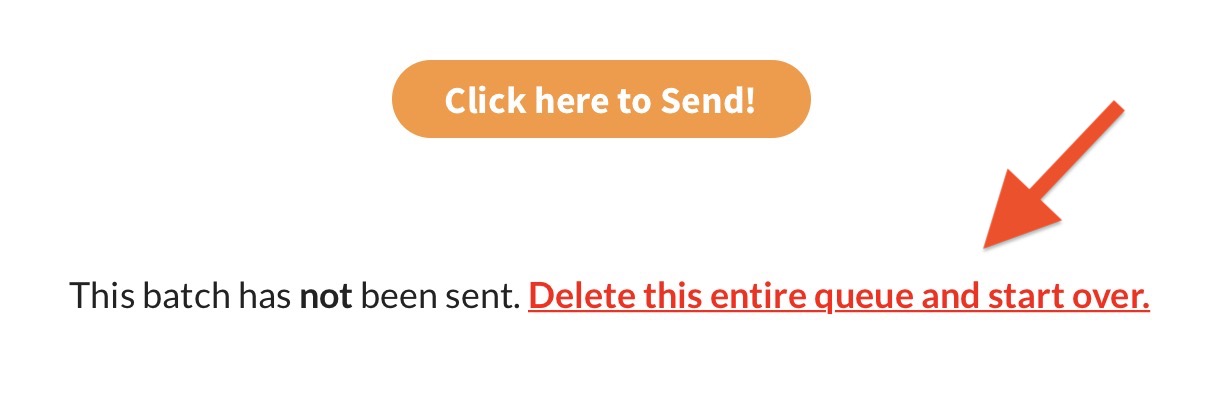 If you noticed something wrong with your batch, simply tap the red text pointed to in the image above to delete the entire batch and start over. This will return you to editing the email or invoice that created the queue (so don’t worry, you aren’t starting over from scratch).