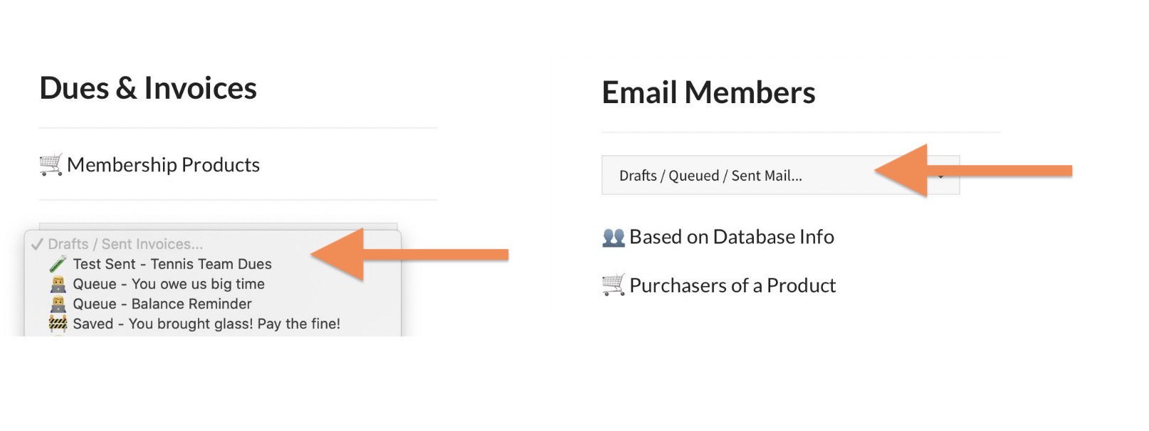 If you were using one of the invoice modules or writing a club newsletter, go back to the Financial or Communication dashboards and look for a pulldown menu of recent invoices or mass emails…