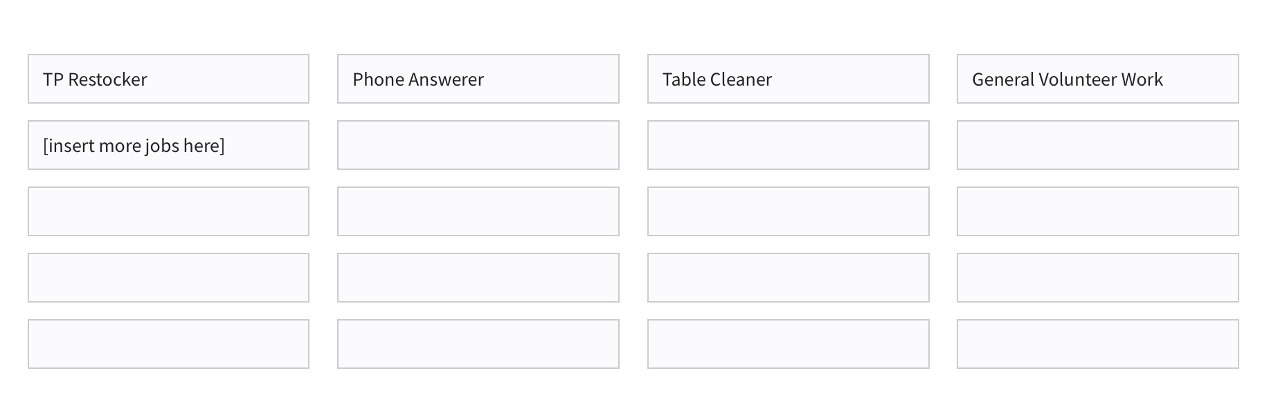 - Create volunteer jobs that members can sign up for. For example, a member could sign up for a specific job on a set date and time or choose their own job within a date range.