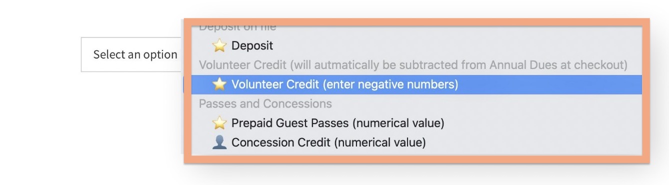 If your club will be using this feature to credit members for various reasons, you may want to label it “Store Credit” to make it as generic as possible.