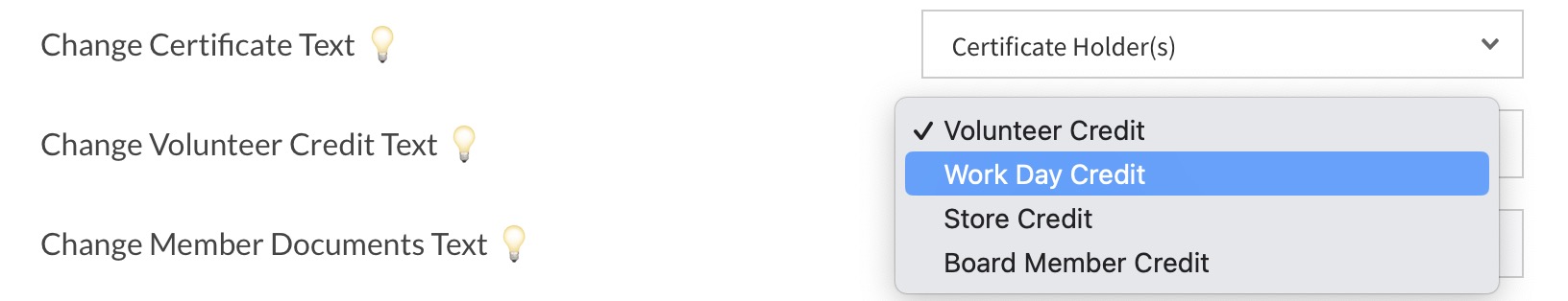 Changing the label “Volunteer Credit”