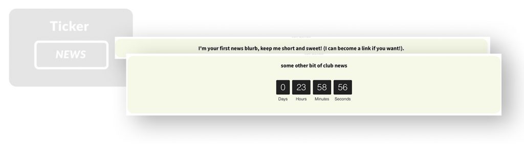 Add a cycling series of timed news blurbs with optional links. Great for highlighting timely announcements on a page. And if you set a Ticker End Date, it will also show a countdown below the cycling news. Just don’t forget to change the news or remove the section when they don’t apply anymore!