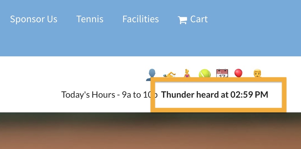 This temporary status will show in the top right header of your website. If your club has enabled “Today’s Hours” to show, it will follow the hours. If the hours are not showing, this will be the only message in that area.